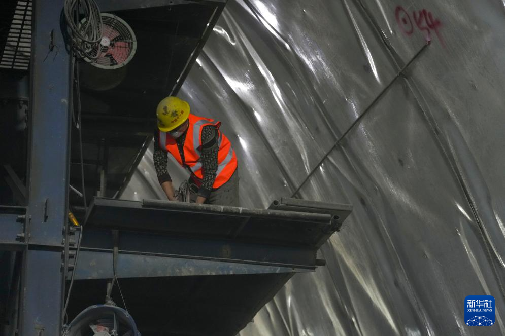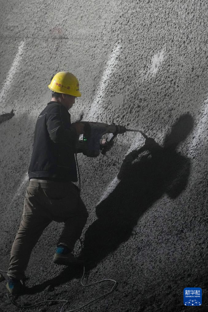 1月12日,中铁十一局集团有限公司的工作人员在雄忻高铁北太行山隧道内施工作业。新华社记者 杨晨光 摄